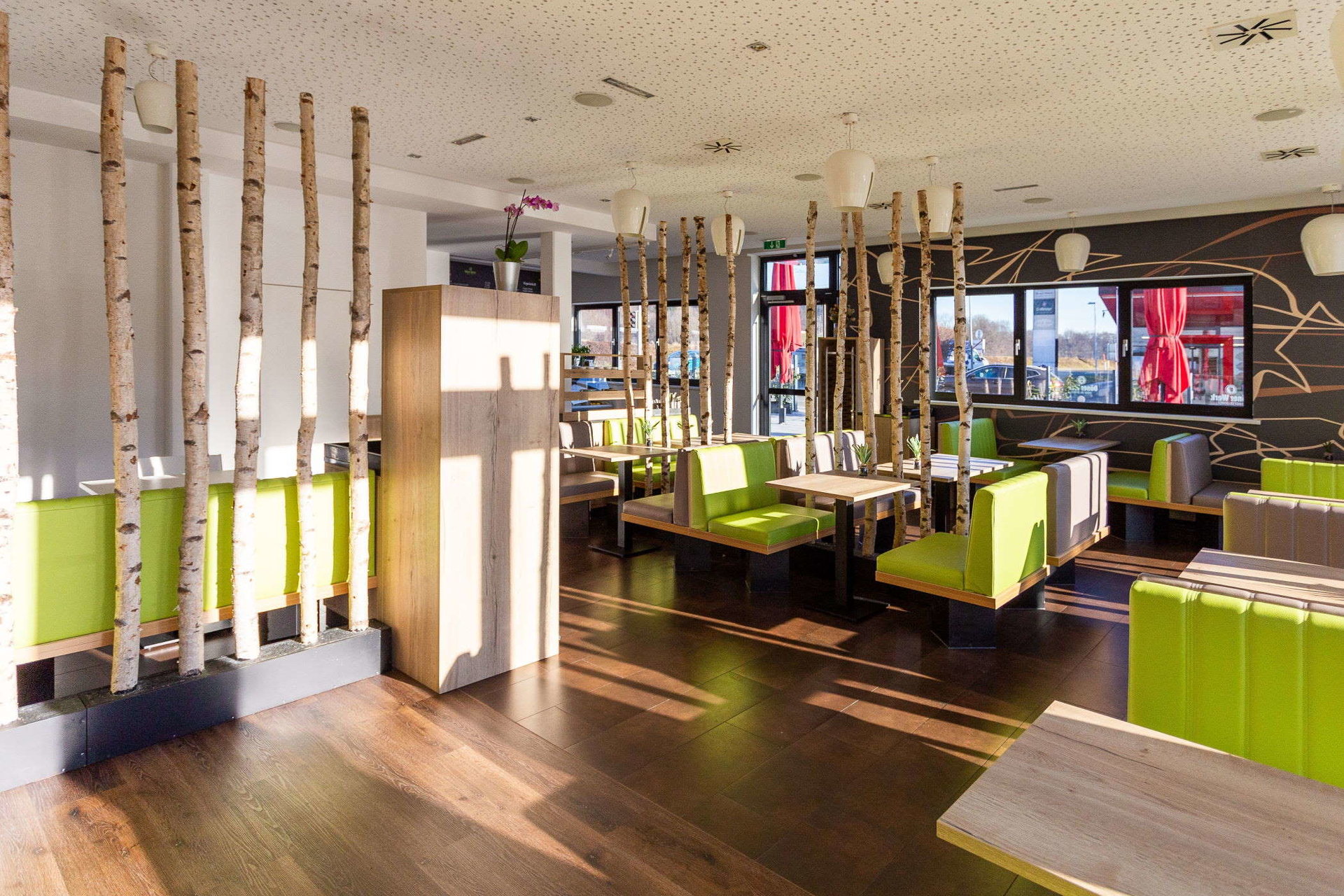 Das DönerWerk ist modern eingerichtet und bietet ein angenehmes Ambiente, in dem Sie sich wohlfühlen können. Wir haben eine Vielzahl an Sitzplätzen im Innenbereich, sodass Sie immer einen bequemen Platz finden. Außerdem verfügen wir über einen „Allwetter-Gastgarten“ mit Sonnen- und Regenschutz, damit Sie bei jedem Wetter draußen sitzen können.