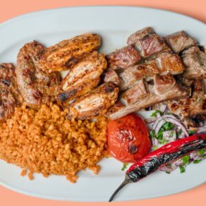 Gemischter Grillteller mit Hühnerfleisch, Roastbeef, Lammkotelett, Köfte und Salat, dazu Reis oder Pommes | 26,90 € |